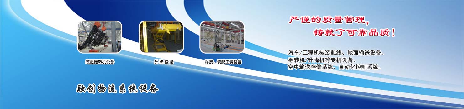 無錫市融創物流系統設備有限公司專業設計制造翻轉機,裝配翻轉機設備,各種生產線總裝線部裝線,是翻轉機的專業設計制造廠家,最新翻轉機價格?來自無錫融創;無錫融創公司主要產品系列:裝配翻轉機設備、升降設備、焊接裝配工裝設備,工程機械總裝部裝線、卡車總裝及部件裝配線、轎車總裝及部件裝配線、白色家電裝配線、農業機械裝配生產線、地面輸送設備、空中輸送設備、電動氣動小車等。無錫融創生產的各類專業成套設備已廣泛應用于轎車、卡車、客車、各類工程機械、發動機、車橋、農業機械、郵政、家電等行業,特別在工程機械產品裝配線、卡車生產裝配線領域,是國內最大的設備供應商之一。 |